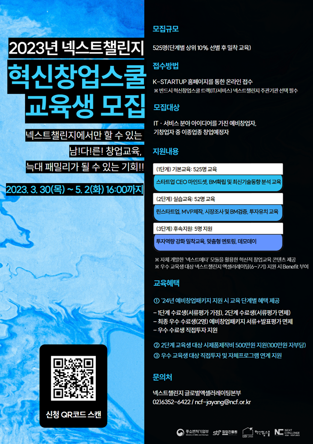[넥스트챌린지] 2023 혁신창업스쿨(IT/서비스) 교육생 모집