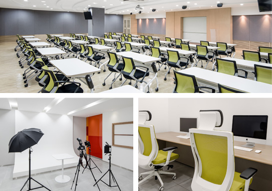사무실, 스튜디오, 공동작업장, 제품전시공간, 교육장 등을 제공하여